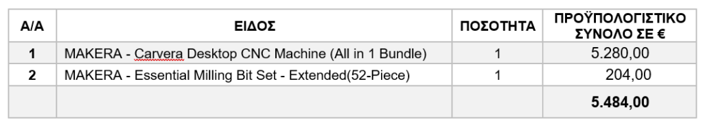 Τα προς προμήθεια είδη είναι: